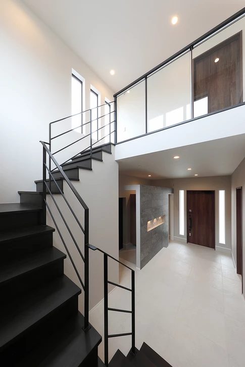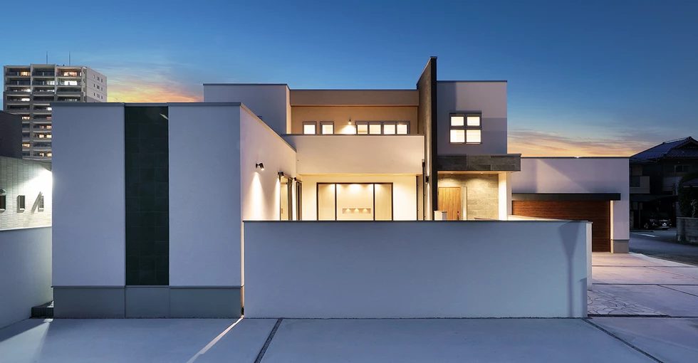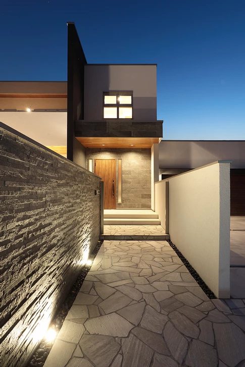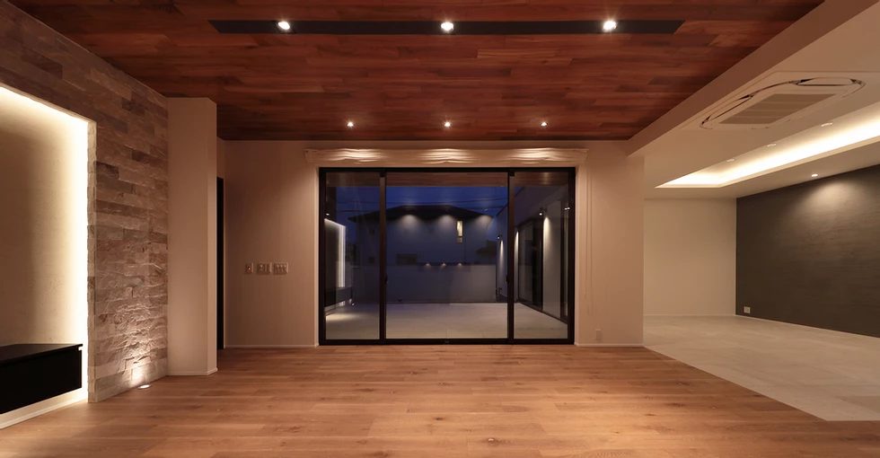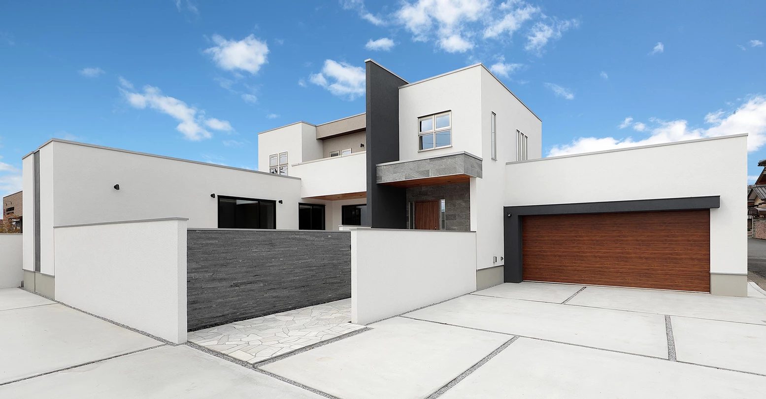 2台ガレージと中庭、2.7m天井リビングが共存する家